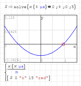 You need provide a value to x(t) for asking for a value of t that satisfies the equation, in the form "x(t)=k, t" where k is the value you expect obtain when replace for t:
