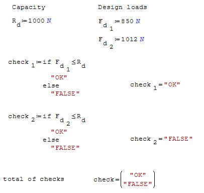 By using indices you can also create a "table" with all "OK" an "FALSE" results. This can be convenient if you have different load cases with each one or more checks in a large document.