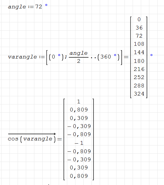 I am defining the following variables: angle:=72 and varangle:= 0, angle/2..360