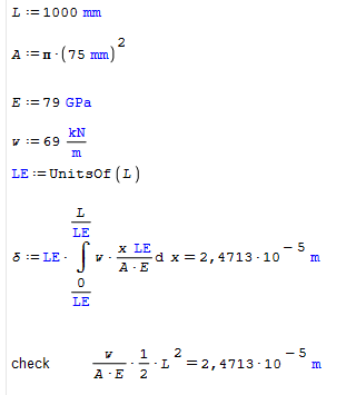 so, the units of the variables are: w [kN/m], A [m²] and E [kN/m²], therefore the result shold be [m].
