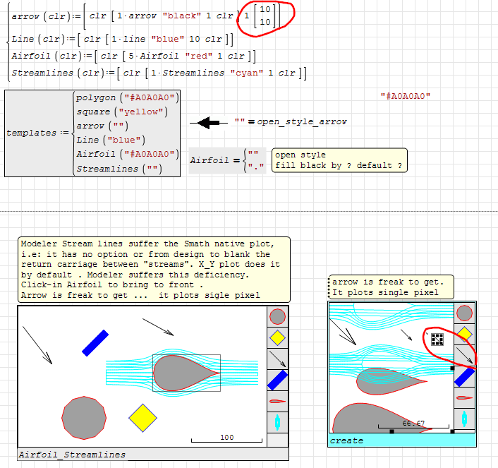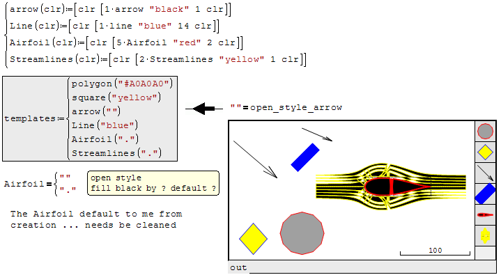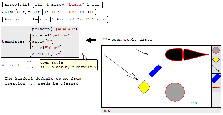 WroteJean, in your example you could specify an appropriate default size of the objects. Then the arrow template doesn't appear as a single dot any more.