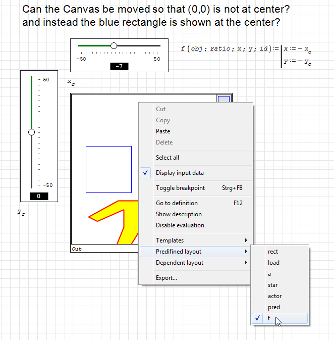 Yes, but to make it interactive, you need slider regions. Use a function as predefined layout. It's third and fourth arguments are channels to convey the canvas co-ordinates.