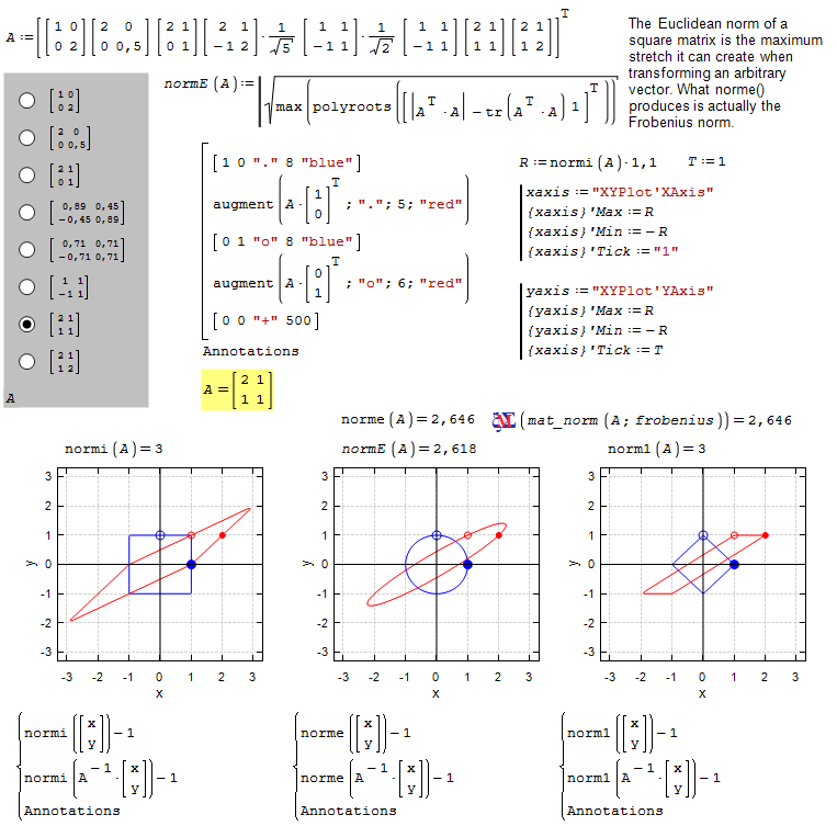 Visualization of transformations and matrix norms using implicit plots and automatic scaling of the X-Y plots.