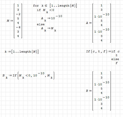 This is quite easy to do in Mathcad, but it seems SMath doesn’t have the same capability. When I try to test on a value of an element using SMath’s if statement to see if that vector element needs changing I get syntax errors in SMath.