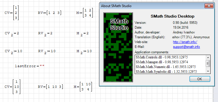 SMath Studio 0.98.5953 (19 April 2016) - Messages