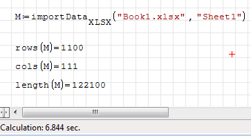How much slow? With importData.XLSX I can import a 1100x111 matrix of numbers in ~7-8 seconds (optimization: numeric)