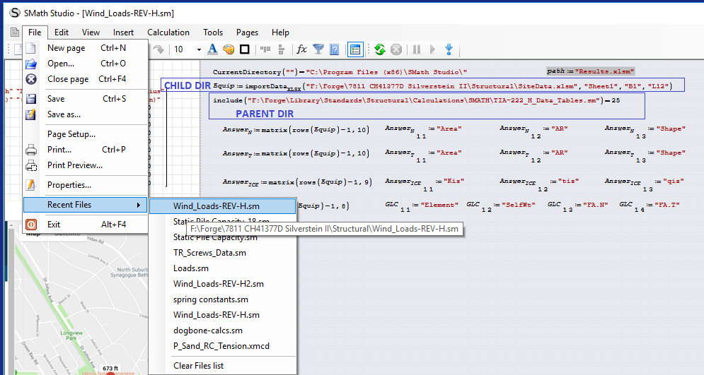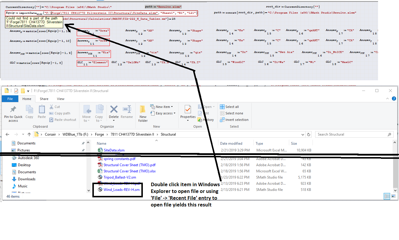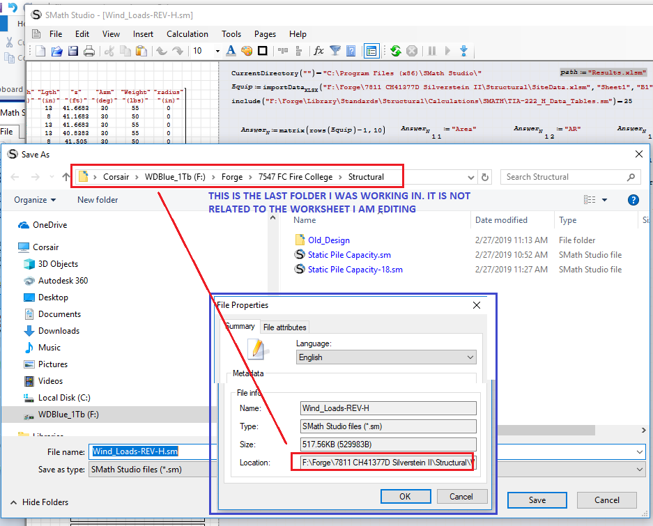 The reason I am trying to be explicit in the directory and filename is I have the necessary job/project specific reference files in one 'local' directory and the global reference files in another 'network drive' directory location. I am trying to force SMATH to only read and write out to the local directory.