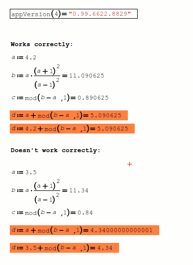 In any case, it's definetely not equal to 4.34, since problems occur with operations that follow. For example, b - d doesn't give an integer as a result and thus, if you put it as an argument in a function that needs integers as an argument, like Random(), you get an error