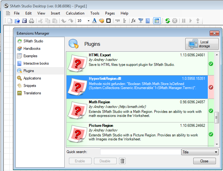 - Second, plugins directory designed to support only plug-ins which are 100% compatible with current version of SMath Studio (usually you can find only built-in plig-ins). All others are better to put under extensions\plugins\