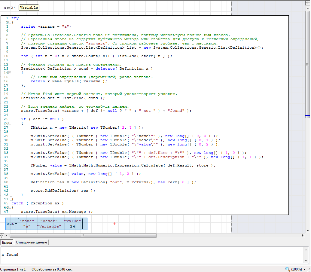 1. как получить конкретную переменную из Smath Studio