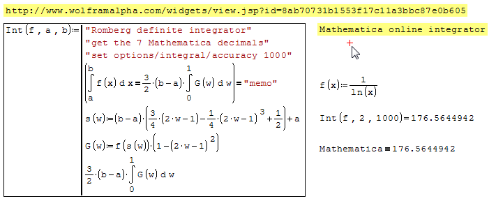 The integral of 1/(ln(x) with limits of x from 2 to 1000 does not agree with mathlab or maxima --