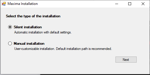 - Provides options for user to either install maxima manually (with auto download) or install it silently.