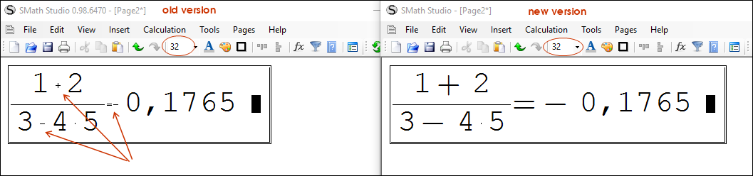 At low resolution/small font size, the old formatting is easier to read, mainly due to the blur of the thin-lined operators.
