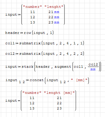 The same problem also exists inside a result matrix, where I want to change the unit of a complete column.
