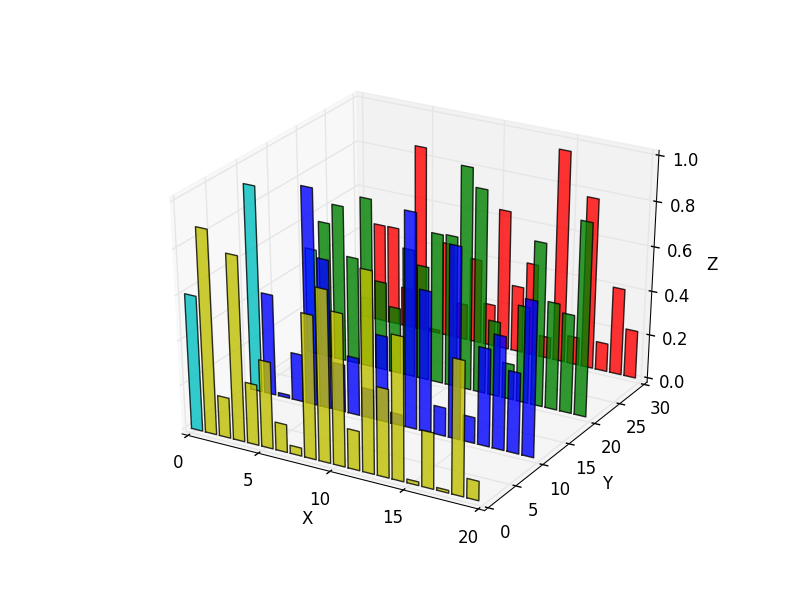 ax.bar(xs, ys, zs=z, zdir='y', color=cs, alpha=0.8 )