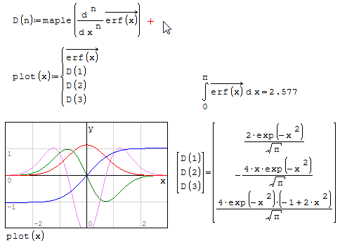 WroteHi Tom. maple() knows how to eval diff because, as plugin, Viacheslav (uni, plugin author) know how to handle the function el(A,k). But notice what happen with an unknoun function, like El(A,k). So, problem here is what to do with the SMath el(A,k) with the operator diff.