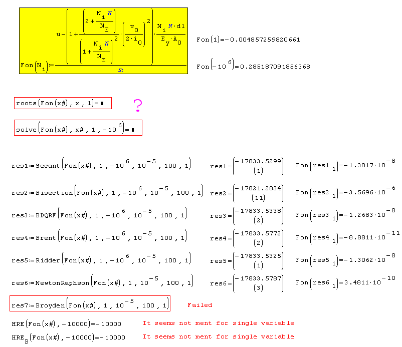 As I have a practical problem to solve a non-linear equation, I tried to use the existing stuff and I failed ; probably that is mainly to my lack of ability on the matter.
