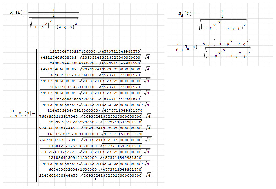 The two equations in the left part of the image are belong to a long document, the β and ζ are previously defined. I want to get derivate of Rd(β), but it always give me the wrong results,