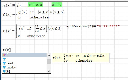 When f(x) is defined it sets f(x) equal to cases(a,xNote when g(x) is defined it will step through and evaluate the if() function and each individual input parameter (xThe cases() function within f(x) doesn't actually evaluate until it is called with f(0).