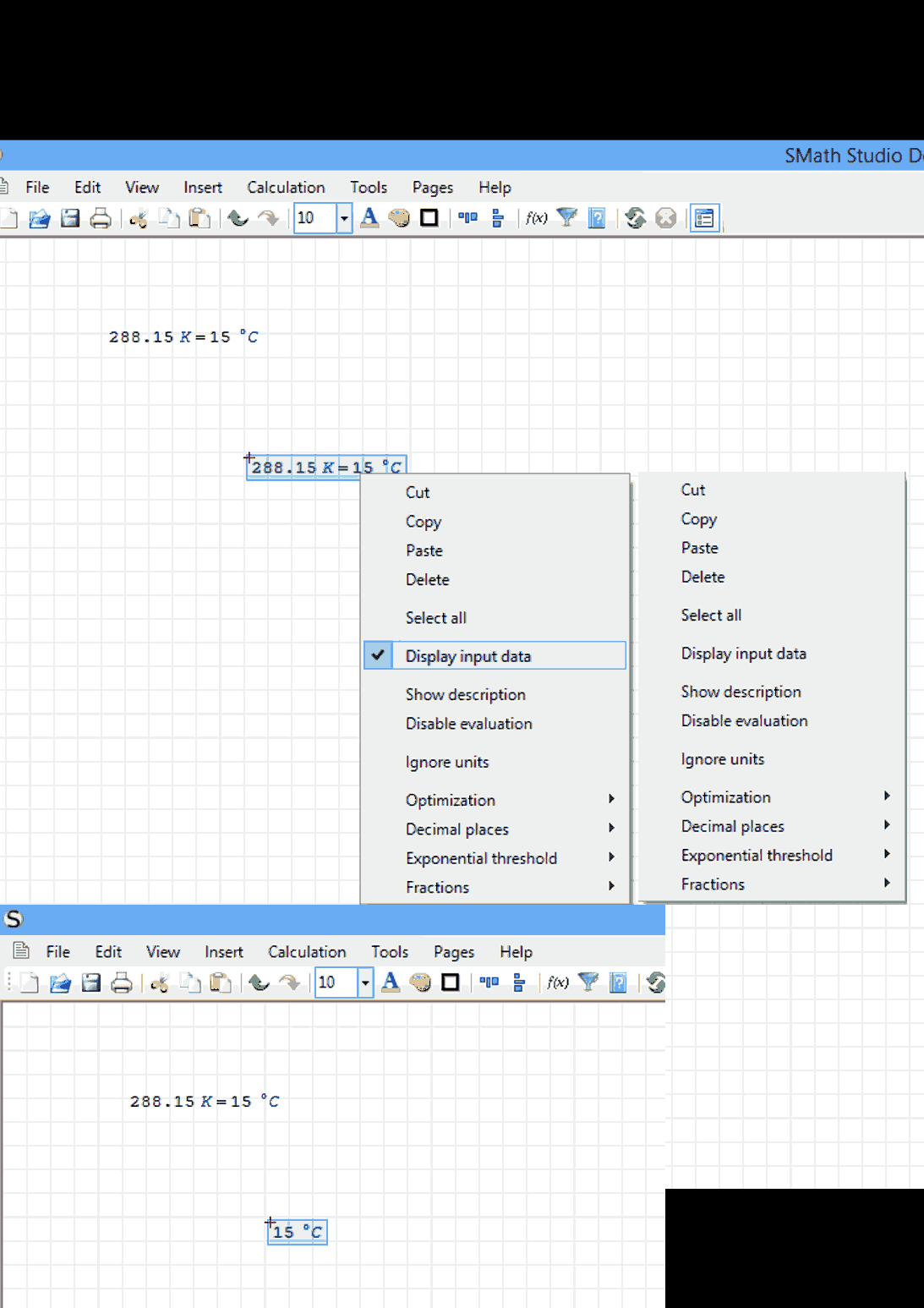 Currently, the custom units of result placeholder has scope of whole expression. So, e.g. trying to select result (15°C) in following line: