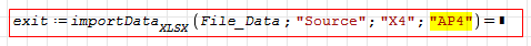 2. exit: importData.XLSX(File_Data,"Source","X4", "A4") - imports.