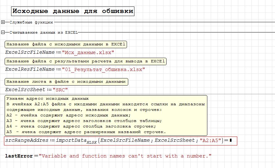 Re-using Smath code (very simple - single line, single cell import), I get an error: