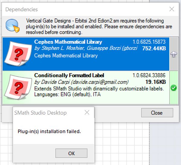 fails due to MathcadFileAccess plugin failing to install.