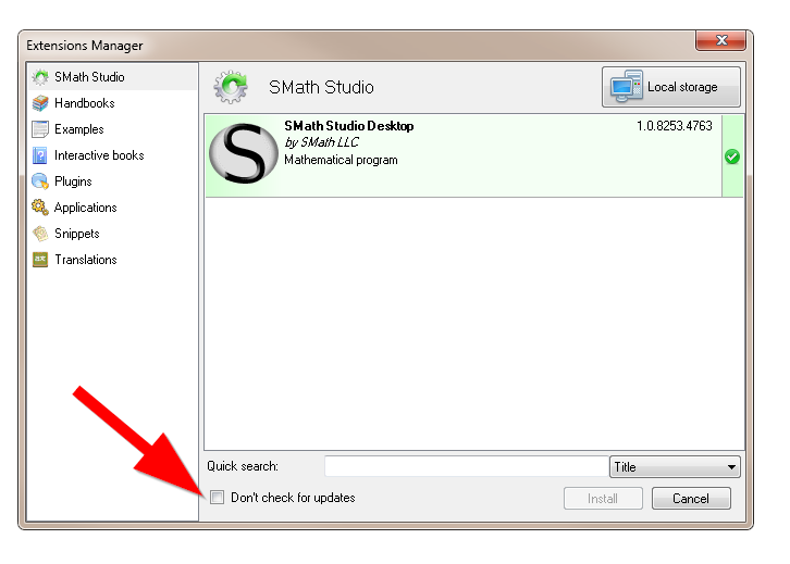 The "don't check for updates" checkbox is unchecked?