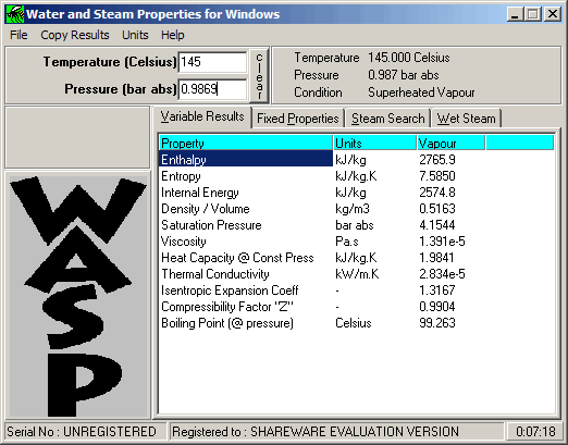 "WASP" from "Katmar". all properties are tabulated per T(°C) or P(abs).
