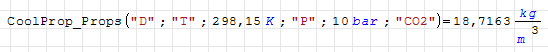 CoolProp_Props("D","T",298.15*'K,"P",10*'bar,"CO2")