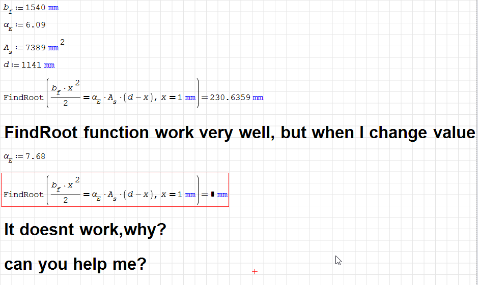 It seems something is wrong here. Results seems to be doubtful and I think epsilon is missing as a third argument in FindRoot()