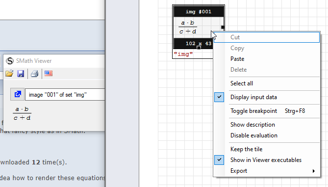 I'm working on a simple app for training on Slide Rule use (for my personal purposes), and I can generate problems for practicing that involves multiply, division, pi, x^2, sqrt(x), and so on. But when I run the generated app, the equations are not shown in that fancy style as in SMath.