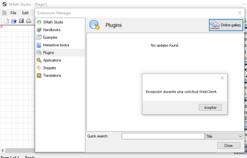 SMath starts, but can't update any plugin.