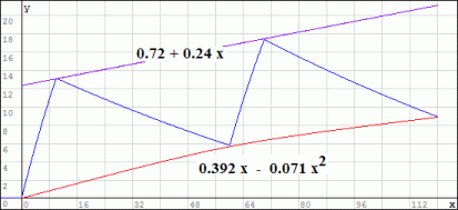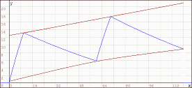 discontinuous zigzag. Easy to draw upper/lower bounds on your plot