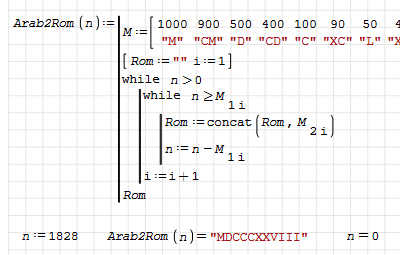 That's another function, not similar with the others above. Here the problem is the origin in Mathcad for strings. Try to set ORIGIN = 1 in Mathcad and rewrite the code.