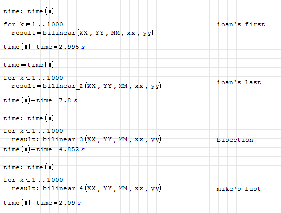 Still, Inter2d is the fastest (on the computer I use at the moment) when used against a real matrix (23x13), with 6x speed gain over my bilinear.