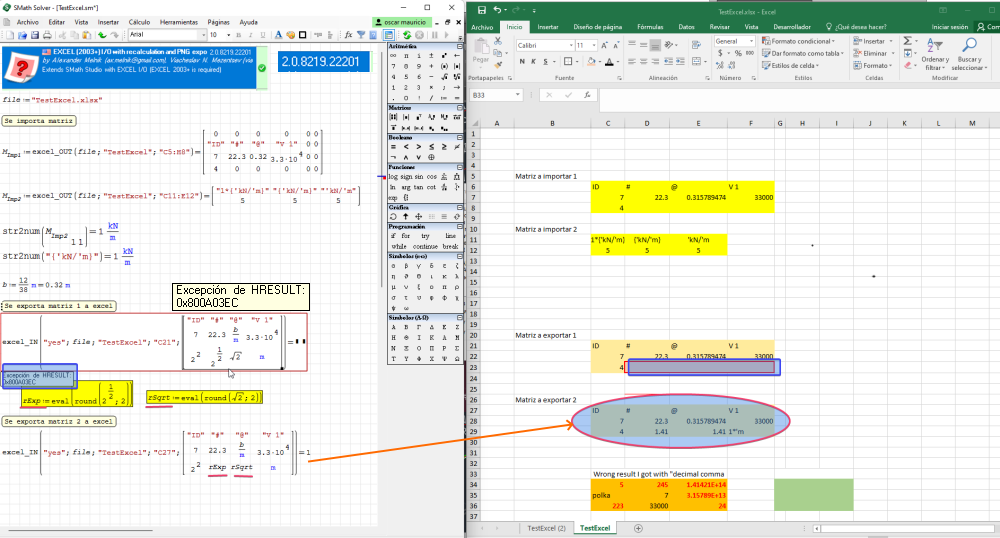 EXCEL (2003+) I/O with recalculation and export to PNG - Uses EXCEL PIA (2003+) to import/export data to and from XLS/XLSX files - Messages