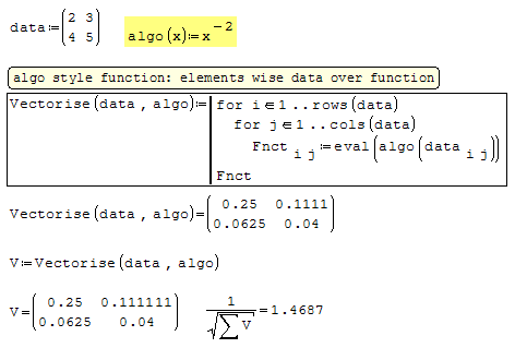vectorize(mat(1,2,3,4,2,2))=mat(1,0.25,0.1111,0.0625,2,2)