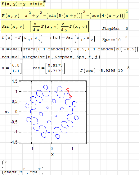 Parameterization of implicit functions with al_nleqsolve