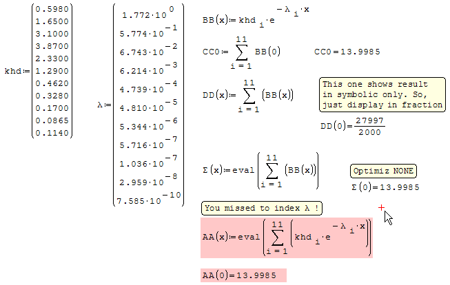 I've tried to use 'eval' function for the output of summation function as like you.