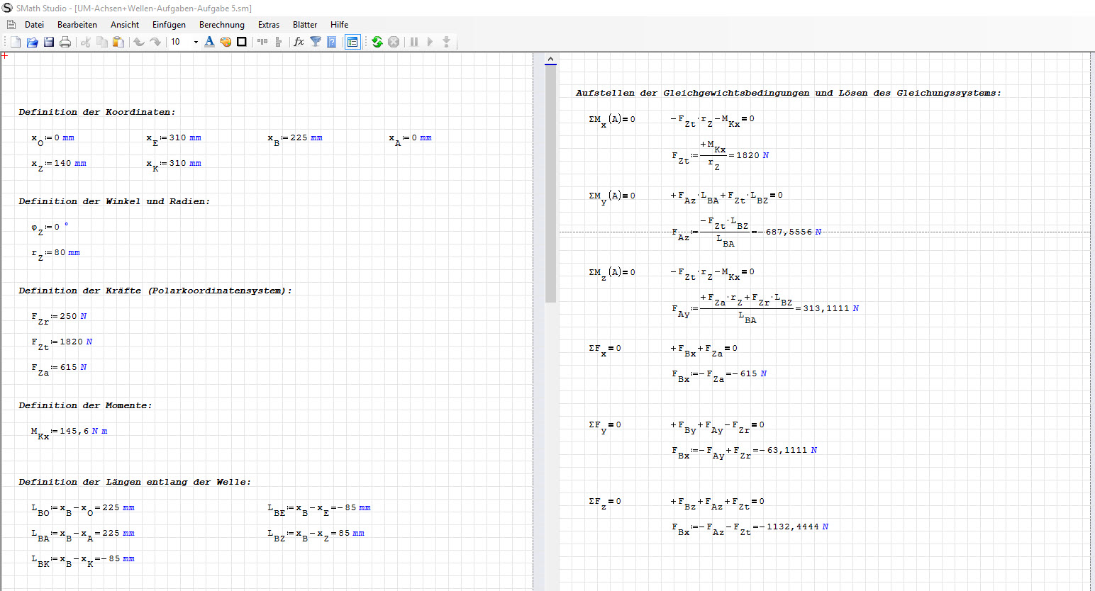 I'm using Excel to generate some mechanical models for shafts of gear-boxes and I also have got the possibility to put the equilibrium conditions into text- formulars.