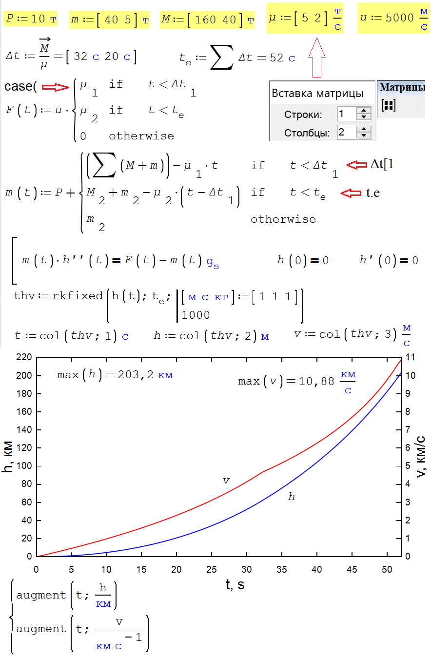 WroteWhether m(t) is P or P+m[2 after engine cut-off depends on whether you get rid of the structure of the second stage or not. As long as we don't consider any subsequent maneuvers, the difference has no influence. If you do nothing, then payload and empty second stage will orbit side by side, separated or not.