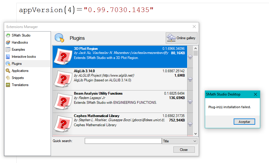 I have downloaded smath studio a few days ago and made some examples to be more familiar with the program. Today I have tested 3D plot and found 2 strange behaviour.