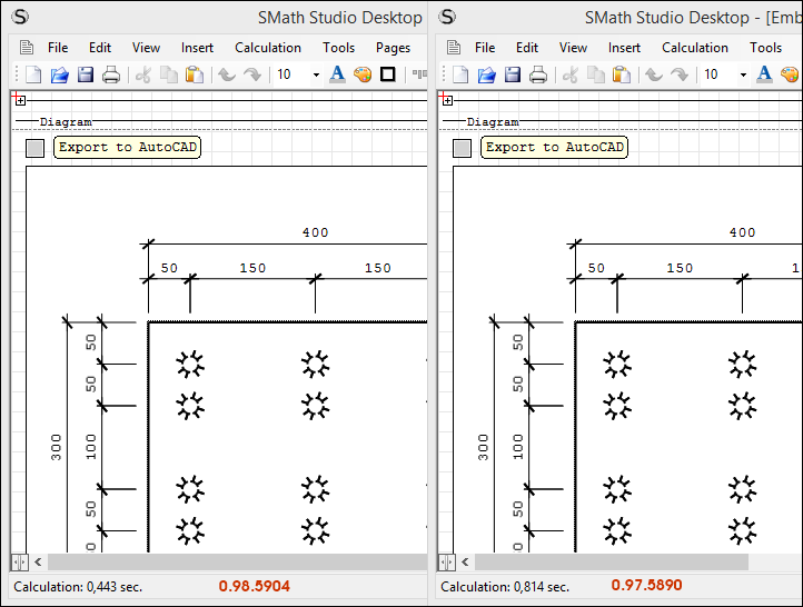 • Calculation performance significantly improved (see timings in the following screenshots);