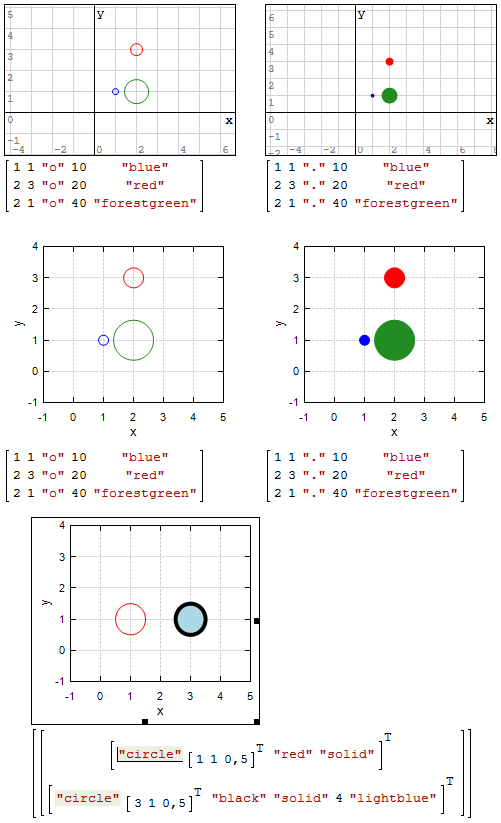 You also could use circular symbols (top row: built-in plot region, 2nd row: XY-Plot region.