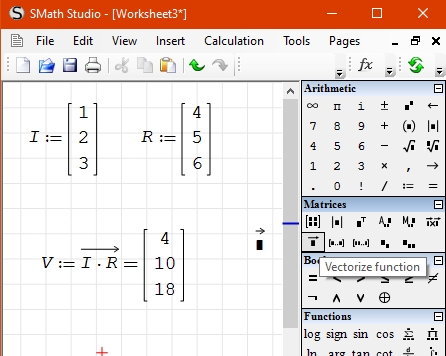 Gracias por el documento, es interesante. Exactamente lo que yo quiero hacer es evaluar para distintos valores que puedan adoptar las variables. Imagina que quiero calcular la tensión para diferentes valores de intensidad y de resistencia (por ejemplo: I = (1,2,3); R = (4,5,6); entonces V = I*R = (1x4=4; 2x5=10; 3x6=18)).