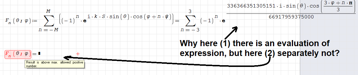 Interestingly, I have performed an evaluation directly in the expression, and there shows with SMath the prospect of the sum.
