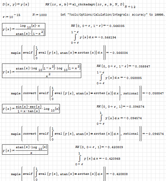 Although Martin has already shown how to use maxima to estimate a numerically definite integral, its error and some other elements, so that what has been said is not just words, this is a procedure to use a well known Runge-Kutta-based ode solver to estimate a definite integral and thus be able to use the details of the procedure to study its convergence and limit its error, just because these details are very well explained in many books on numerical calculus. It also shows how to avoid indeterminacies in SMath.
