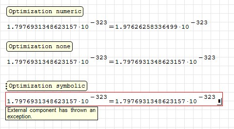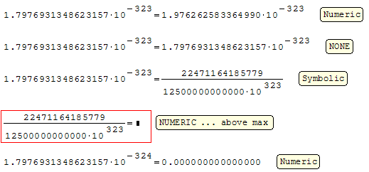 The main problem here is with the rather small numbers close to zero. I think that lots of calculations will fail if we deal with the numbers which have practically zero values because of the errors SMath will popup and stop calculations. I think this behavior can not be acceptable.