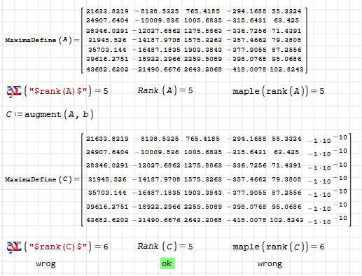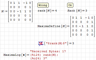 Wrote... Yet I think that maple is not to blame, because maple(rank(M)) sends 4 to maple. At least this happens with Maxima(rank(M)).